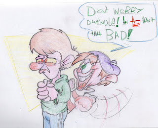 I went back re-inked and recoloured on of the drawings in my last post. Still in progress but this particular version has some HILARIOUS OBSERVATIONAL speech bubbles to go with it.